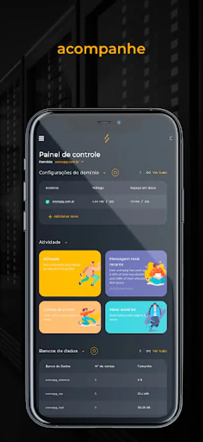 Manage your hosting from anywhere! Have all the management of your cloud administrative panel on your mobile device.