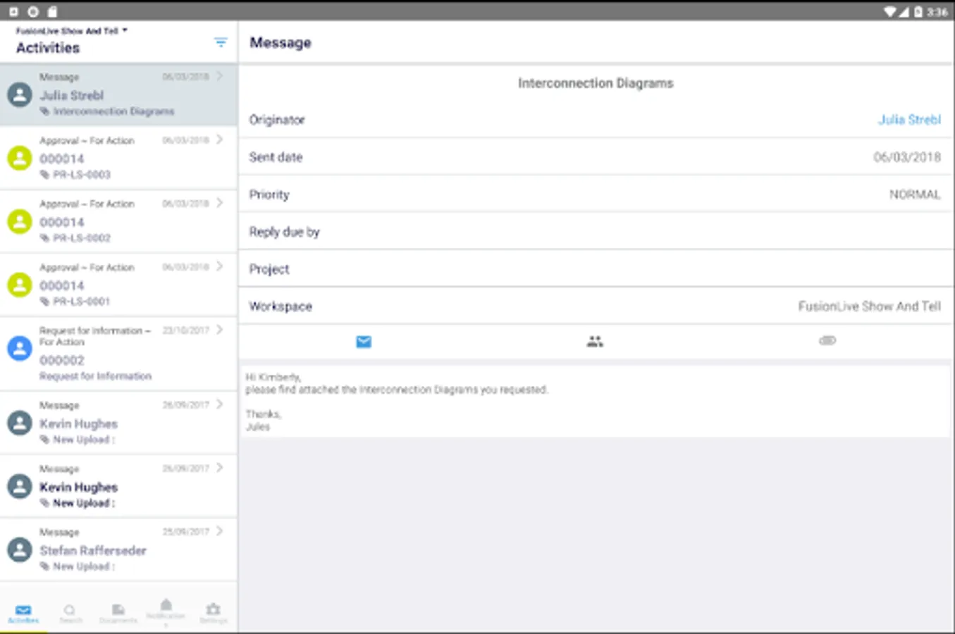 Idox FusionLive for Android allows you to make documents available for offline viewing and keep them up to date with automatic synchronization when you are back online. You can also switch between workspaces and access your FusionLive messages and workflow alerts.