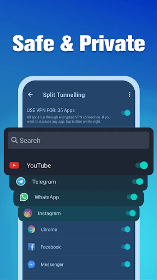 β’ Split tunnelling: select apps you donβt want to run through the encrypted VPN connection.