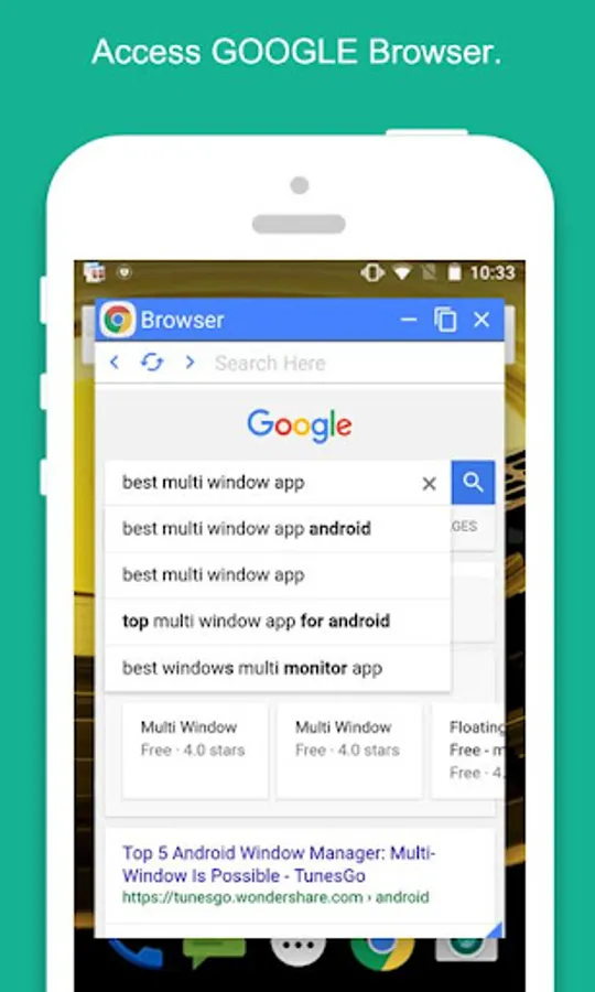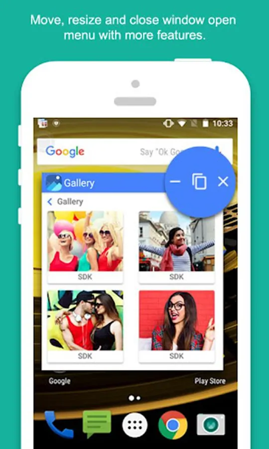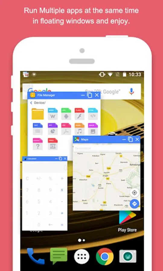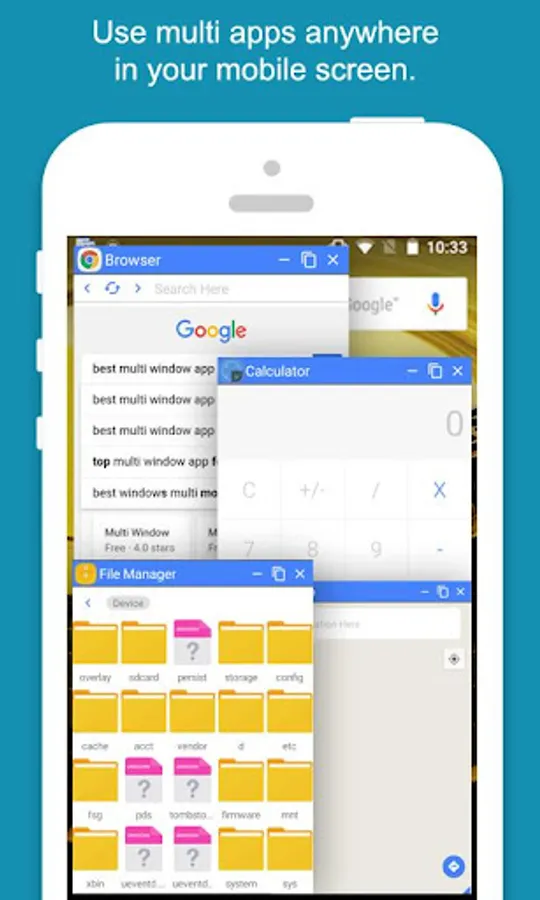 Multiple Window on Screen is now possible with this app , Perform multiple Task like Exploring File Manager , Gallery , Camera , Calculator etc while doing any work on full screen.