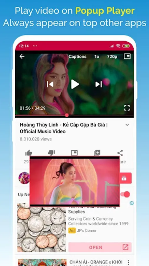 - Watch your videos in full-screen or floating pop-up mode for multitasking, it always keep on the top of the screen