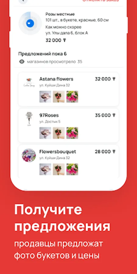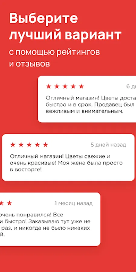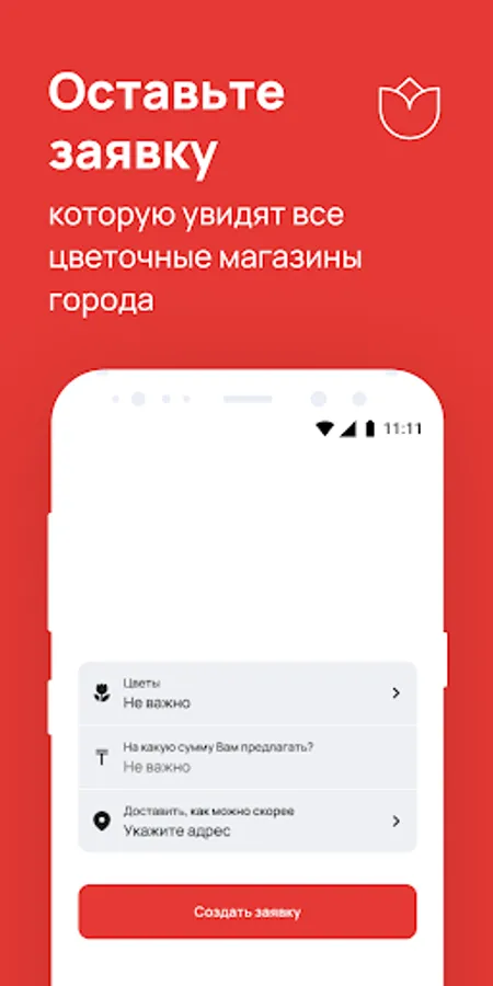 An application for buying bouquets, as well as related products from stores in your city with delivery