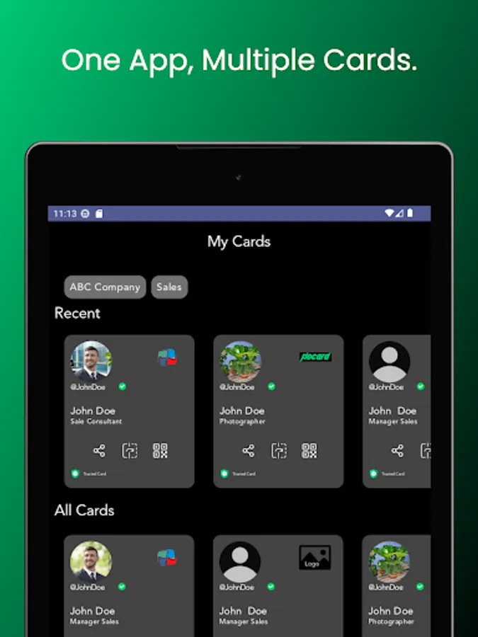 But FloCard isn't just about security - it's also about flexibility. With our app, you can create multiple versions of your card, each tailored to different audiences. This allows you to promote your business to potential customers, investors, or partners in a way that's customized and effective.