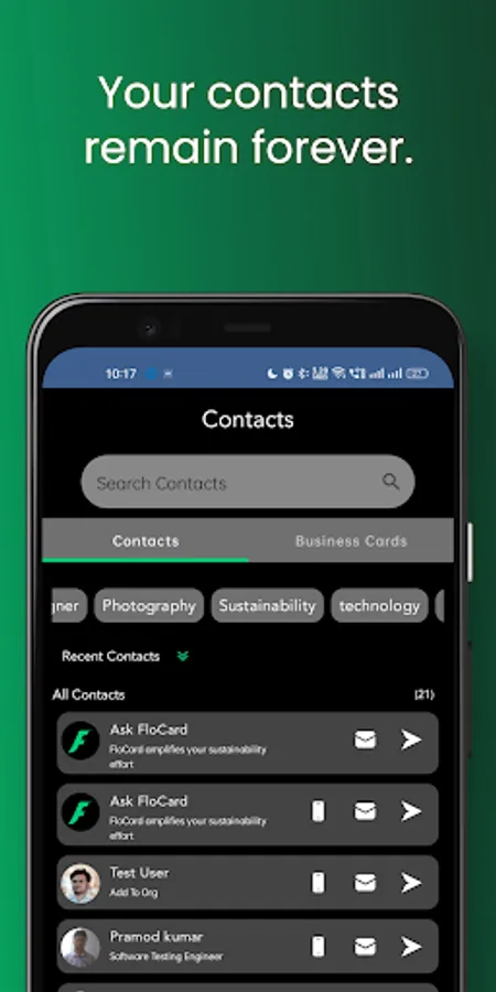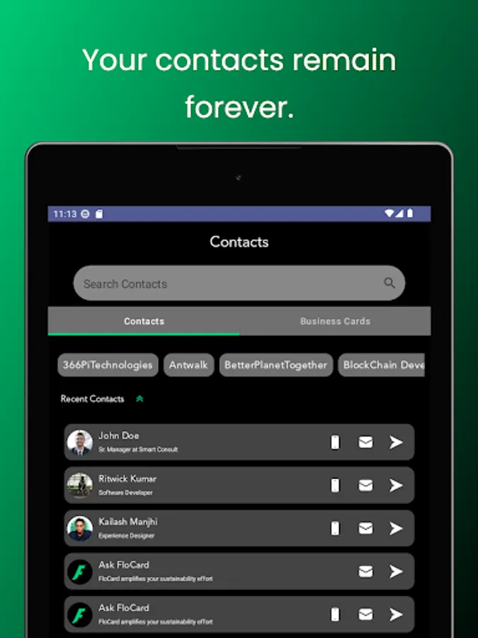 What sets FloCard apart from other digital business card apps is its commitment to sustainability. We cover the entire value chain of sustainability needs for businesses, ensuring that you can make a positive impact every step of the way. Whether it's reducing your carbon footprint, using sustainable materials, or supporting social and environmental causes, we're here to help you build a sustainable future.