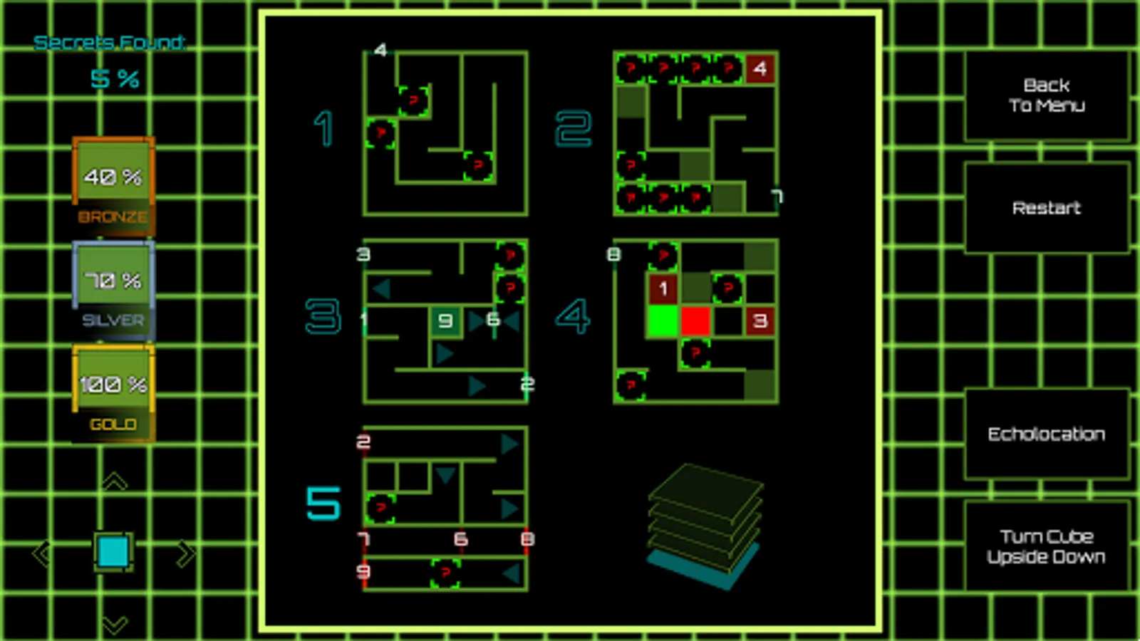- In Exploration mode, you need to find the most "secrets" you can inside the cube. Most of the time (but not always), secrets are visible on the map. So you'll need a good ability to read the map in order to reach those secrets.