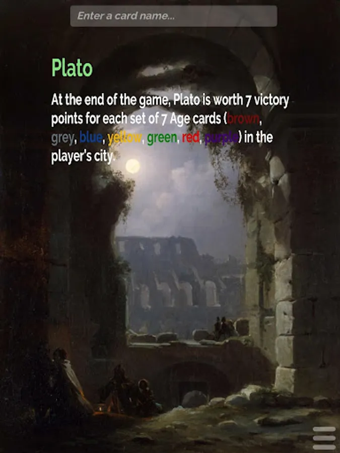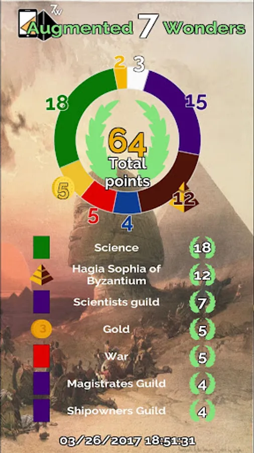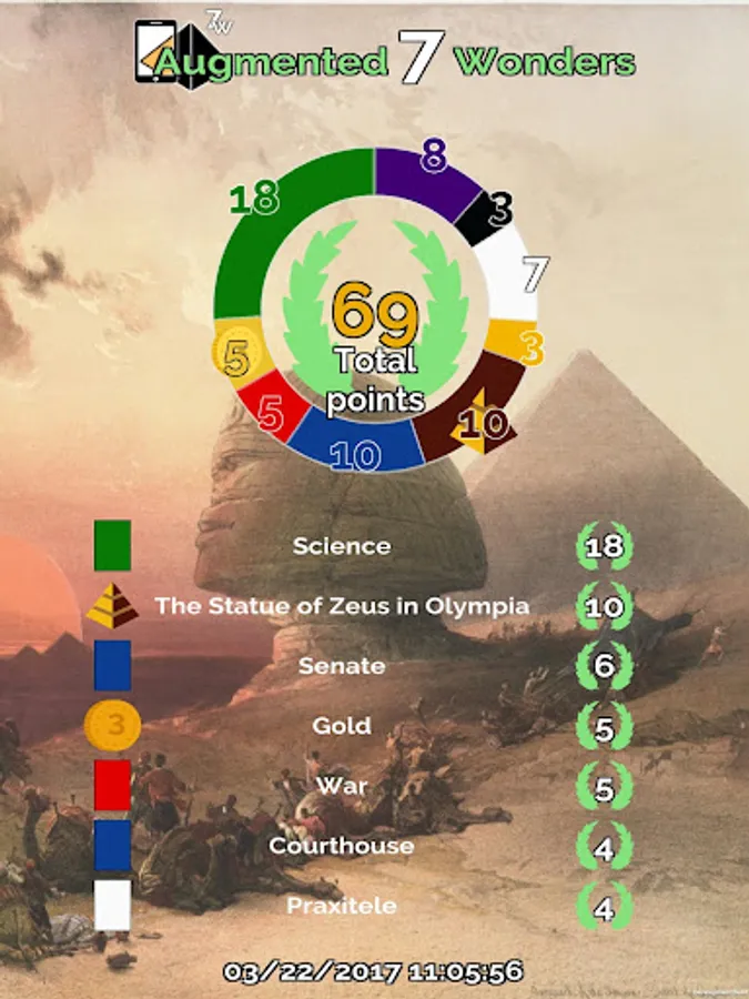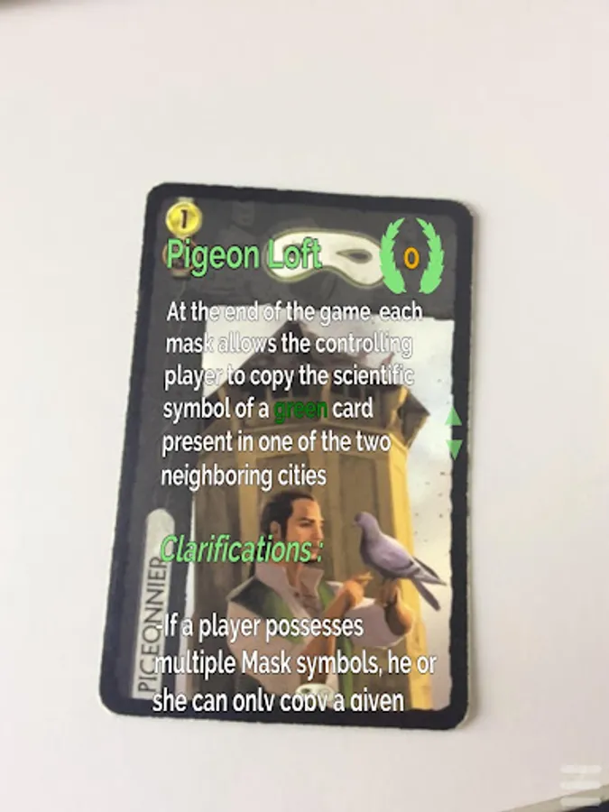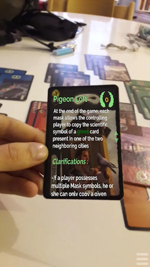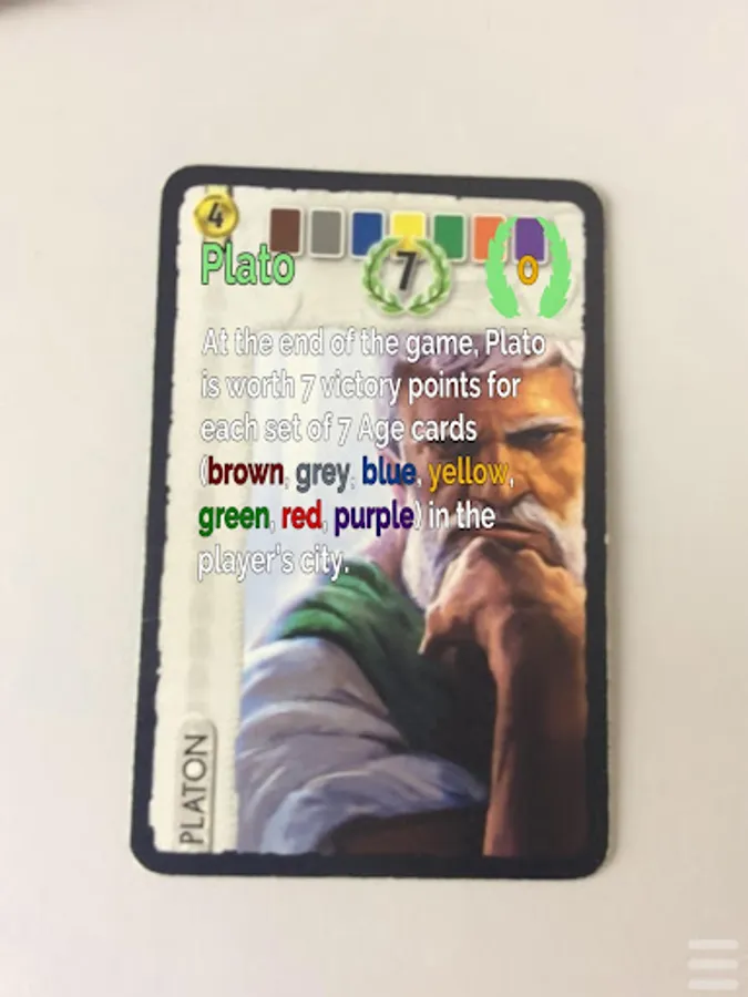 Augmented 7 Wonders is an augmented reality app that helps you play the 7 Wonders™ board game.