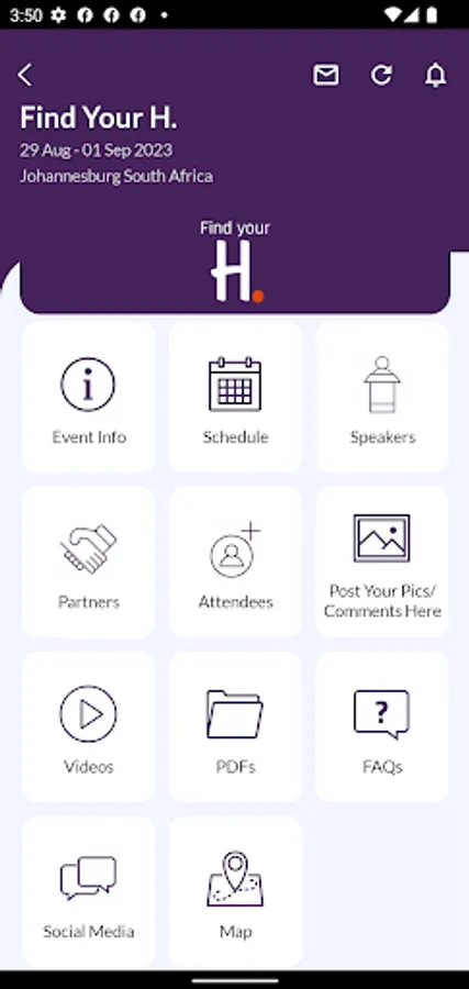 Get all the latest events info for all Find your H. events. In the app you will find the event info, programme and resources.