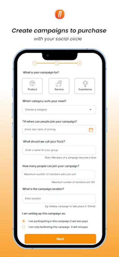 Campaign: Set up the group intent as a Campaign e.g. a vacation. Enrich it with photos, hyperlinks, deadlines, minimum flock size, ..... Send the campaign link to your chat group. Wow! the campaign turns into reality as people start signing up. Believe us, it is magical to see the Flock come together.