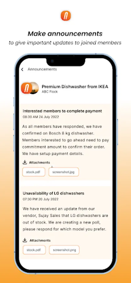 Everyone pays, You Verify: Flock members place their orders, make payments and upload their screenshots. You, the moderator reviews and approves these payments. FlocknGo takes away the entire reconciliation effort and payment screenshots flooding your group chat.