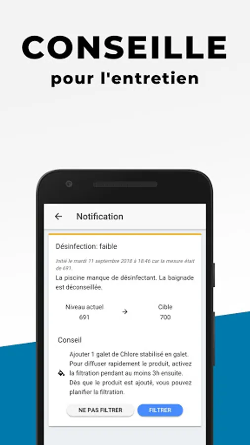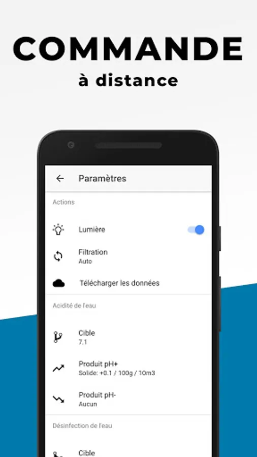 These frequent measurements allow a fine analysis of the level of disinfectant (Chlorine, Bromine) and pH. They also alert on the level of TAC (alkalinity of water).