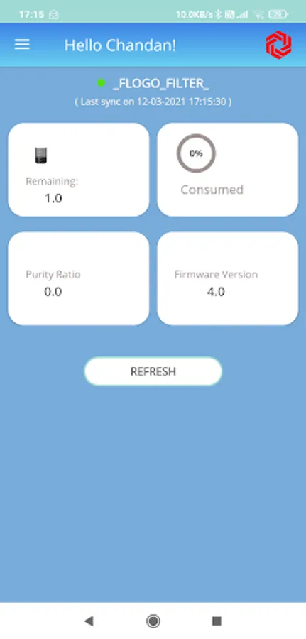 * Scan QR code on the registered water filter & connect via Bluetooth.