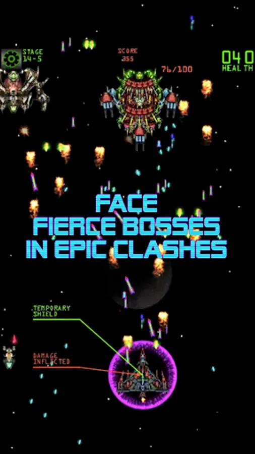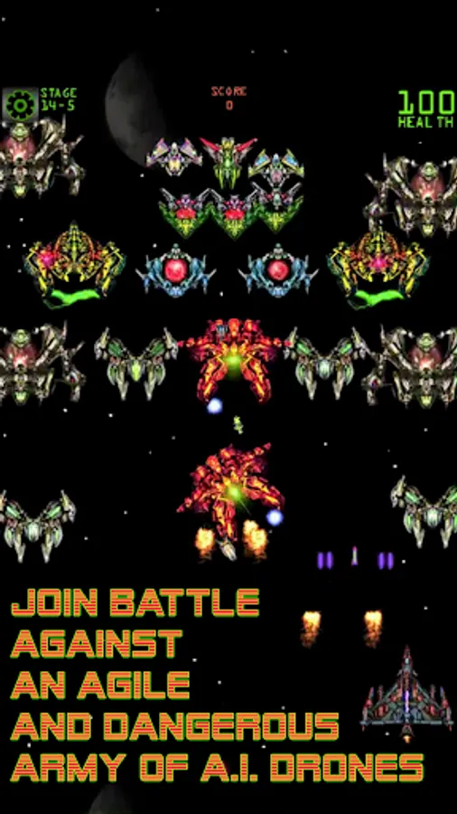 You will be equipped with a multitude of weapons, and the most powerful, fastest, and agile spaceship fighter ever build. You will need all these to face an endless array of drones, each of which has its own custom set of weapons, and attack pattern. As you make progress through the game, you will encounter more dangerous, quicker, and better equipped enemies. These will prepare you for the most extreme and exhilarating boss fights. This is not going to be and easy mission. Only the bravest have a chance. We are counting on you.