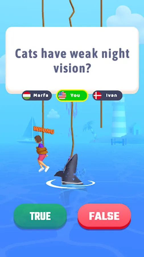Survival Quiz: Shark game - Quiz game with sharks and other players who want to survive.