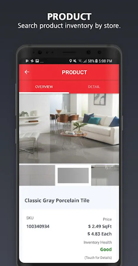 You can manage everything you need for your jobs. With the PRO Premier app from Floor & Decor, you can view your orders, download receipts, check in-store inventory and locate stores.