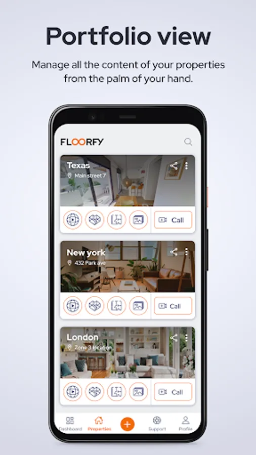 FLOORFY is a software for real estate professionals that will create everything you need to sell or rent real estate online. Select to automatically create 3D Virtual tours, scaled floor plans and share them with your clients through our own video-call platform, which will allow you to show the surroundings through Streetview and GMaps. You can also select to create 3D renders, commercial videos, HD photographs, virtual home staging and more!