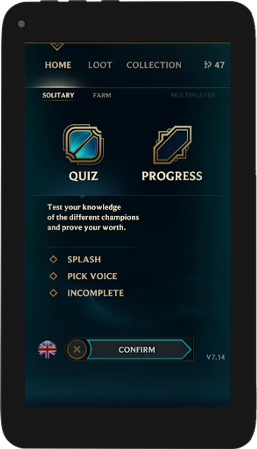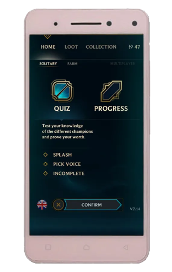 - Splash (easy): You have to guess the champion by seeing his complete Splash-Art