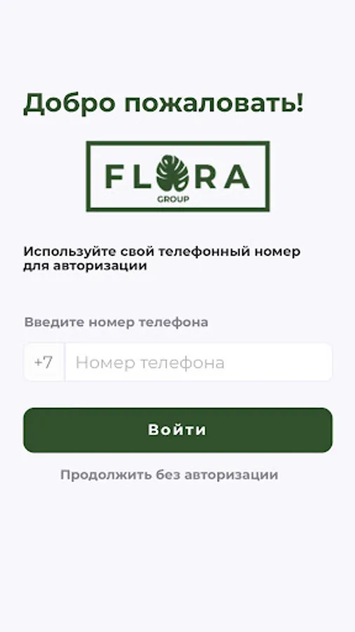 When authorizing in the application, by entering the phone number and confirming it with a code from SMS, the client's price list for flowers becomes available.