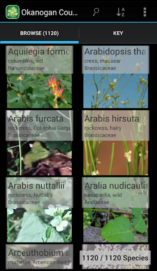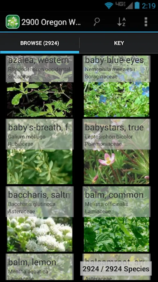 The species list is alphabetized by common or scientific names, or you can do a search by entering a common or scientific name, or even part of a name.