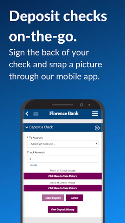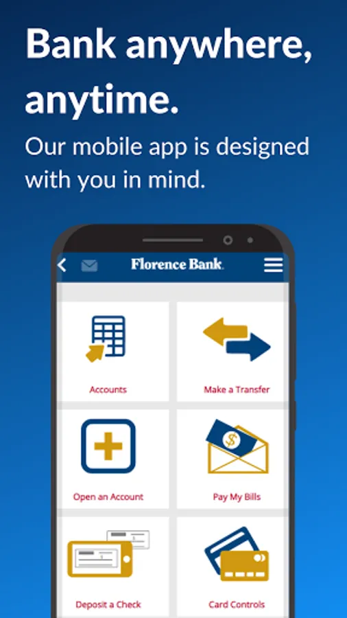 Bank wherever you are with Florence Bank Mobile for Android! Available to all Florence Bank customers, Florence Bank Mobile allows you to check balances, pay bills, and make transfers.