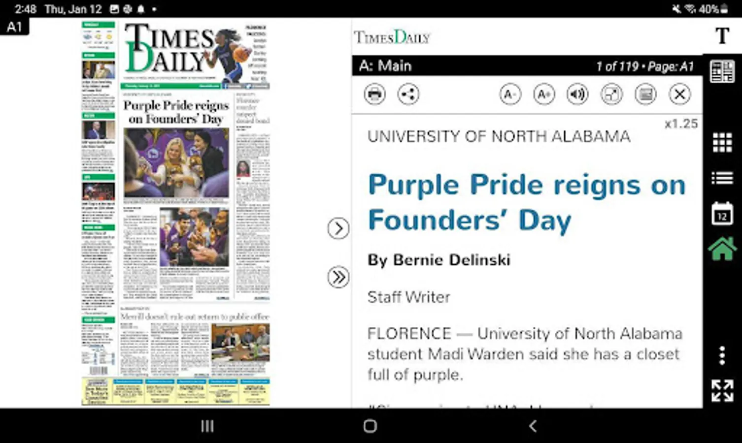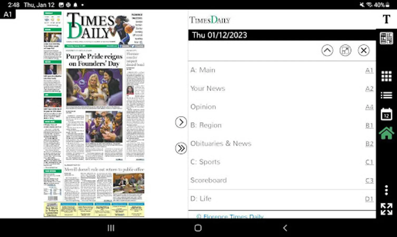 The "TimesDaily eEdition" is an exact digital replica of the printed newspaper. Readers of the paper can flip through the pages, read stories, photos, and view ads just as they appeared in print.
