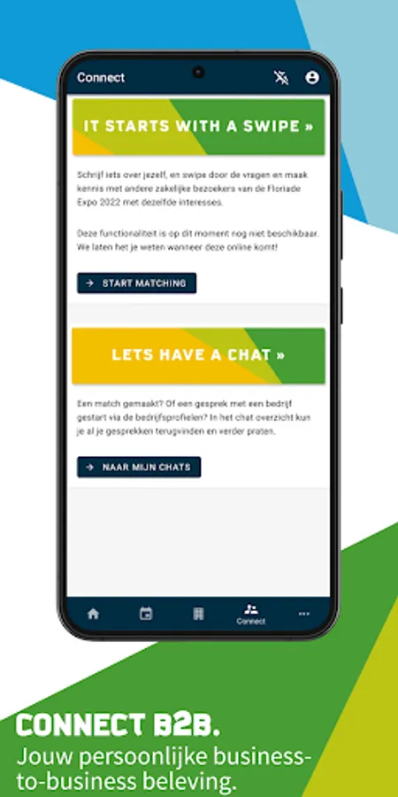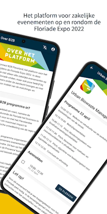 Connect B2B Flevoland is the app for business events in the province of Flevoland for business visitors to Floriade Expo 2022. Browse through the events calendar, make reservations for events and connect with other visitors and companies in Flevoland!