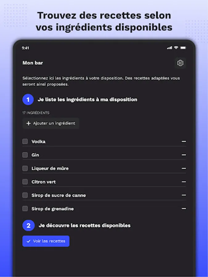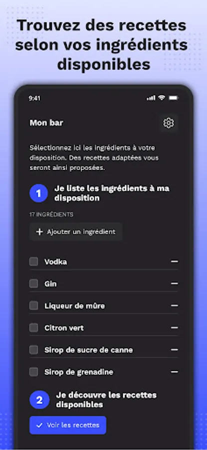 Do you want to prepare cocktails for several people? The quantities of the ingredients are automatically adapted according to the number of people. Become the aperitif specialist with cocktails worthy of the best bars.