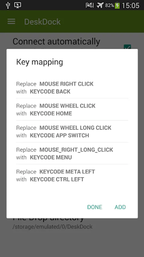 DeskDock allows you to share your computer's mouse and keyboard with your Android devices via a USB cable. The app enables you to control your Android device as if it was an additional monitor for your computer. Simply move your computer's mouse cursor over the screen boundaries to start controlling your Android devices.