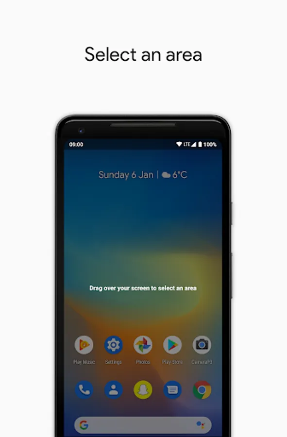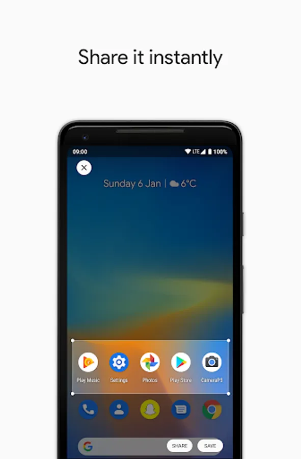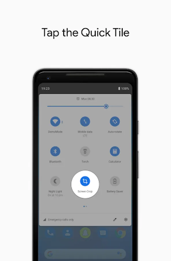 After placing the quick settings tile in the tray and tapping it, swipe across the screen to select an area to be captured. If necessary, you can fine tune the selection using the four handles. You can then share it or save it using the buttons at the bottom. You can also cancel using the close button in the corner.