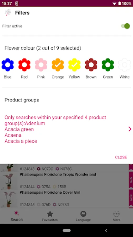 FloriBook is free. You will find on the basis of product code (VBN), name, color, or product detail information of products and product groups.