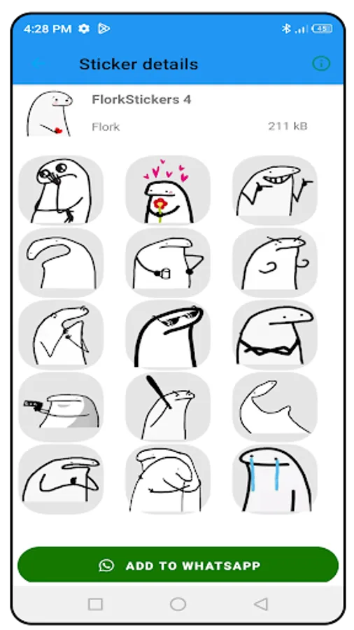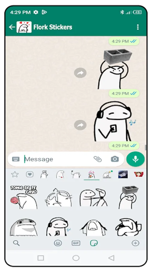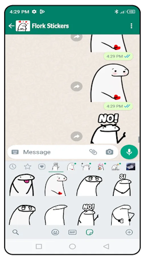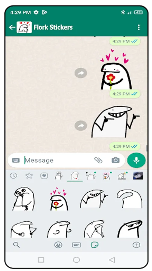 After downloading Flork stickers for whatsapp for girls and boys, you can share it with your friends. Simple flork stickers can send your love through WhatsApp message.
