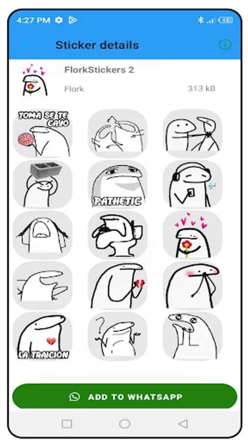 Flork WAStickerapps for WhatsApp are fun memes stickers that you can use to react to your messages in the funniest way.