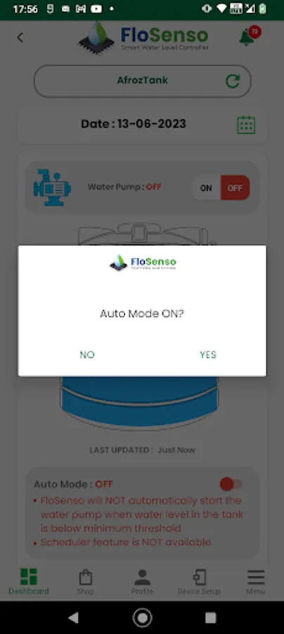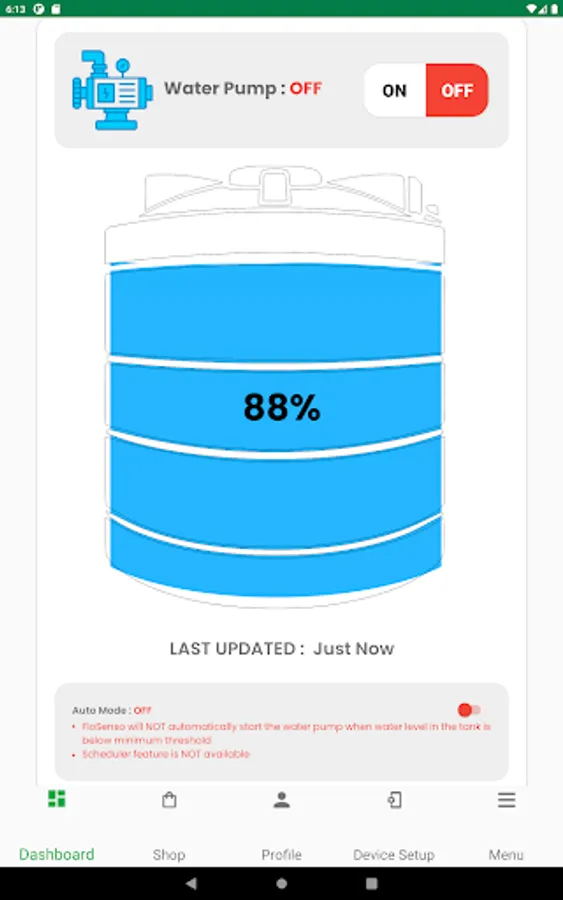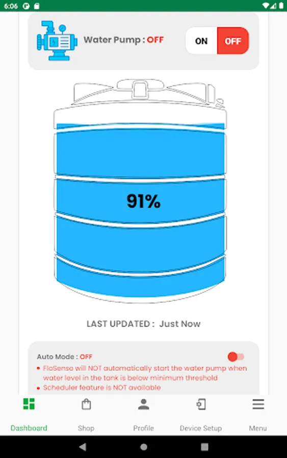 FloSenso operates the water pump as soon as the water level falls below the threshold and switches off the pump as soon as the tank gets full. FloSenso ensures tank is never empty and never overflows which means no shortage and no wastage of water.