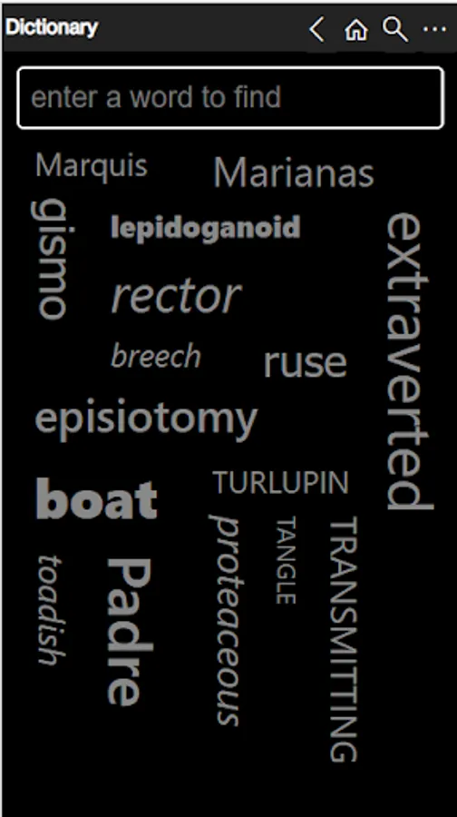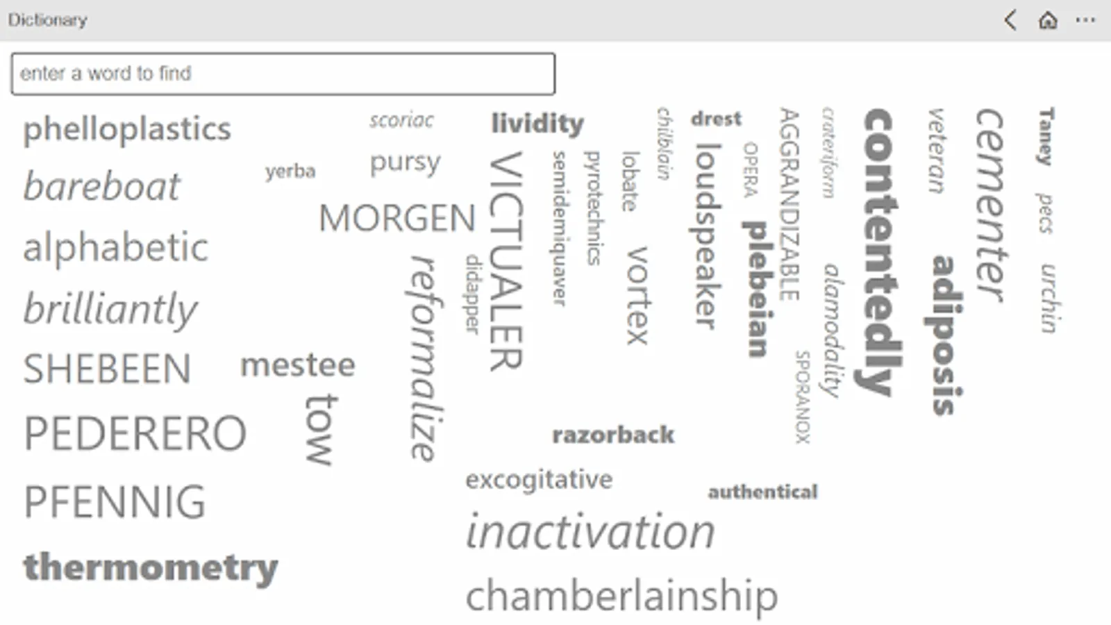 Dictionary is a free offline English dictionary containing over 200,000 words and definitions and no ads. Dictionary is ideal for both native English speakers and English learners or people studying the English language. The dictionary definitions are stored locally, and because it's ad-free there's no need for a network connection. The home page contains a randomly selected word cloud which will pique your curiosity and help you improve your vocabulary, while the search box allows you to find specific words easily.