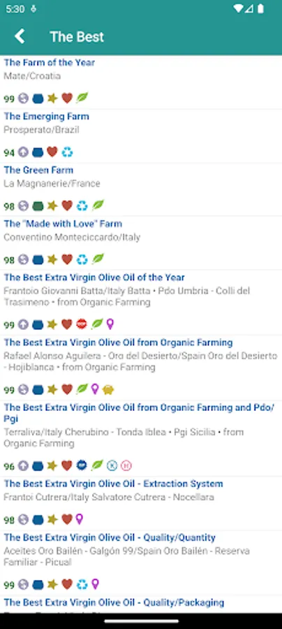 This free version is dedicated to HALL OF FAME and THE BEST, the prestigious international rankings of the farms that every year are awarded a quality prize for the best companies and productions of extra virgin olive oil in the world. You can access the farm cards and the labels of the oils included in the list, which are described according to their variety, their organoleptic characteristics and the best matches.