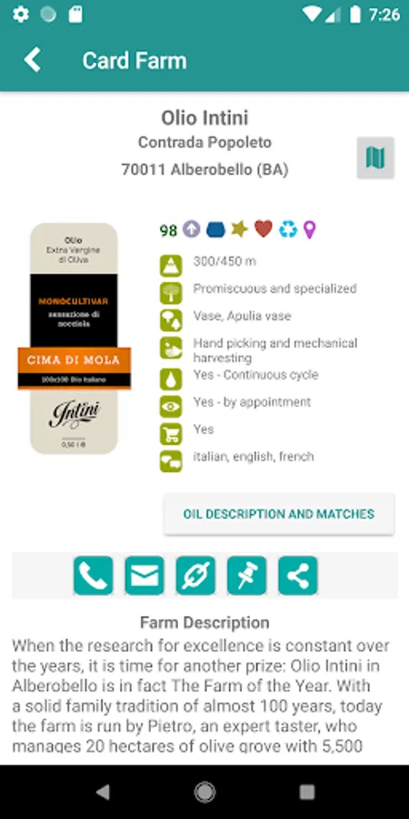 • Look for one of the extra virgin olive oils included in the book according to farm name, geographical area, ranking, price range, intensity of fruitiness, denomination of origin, from Organic Farming, value for money.