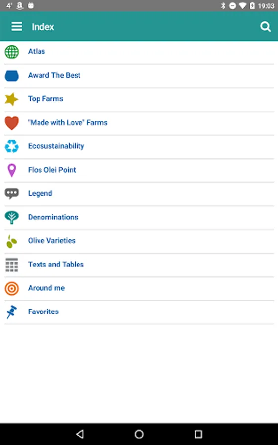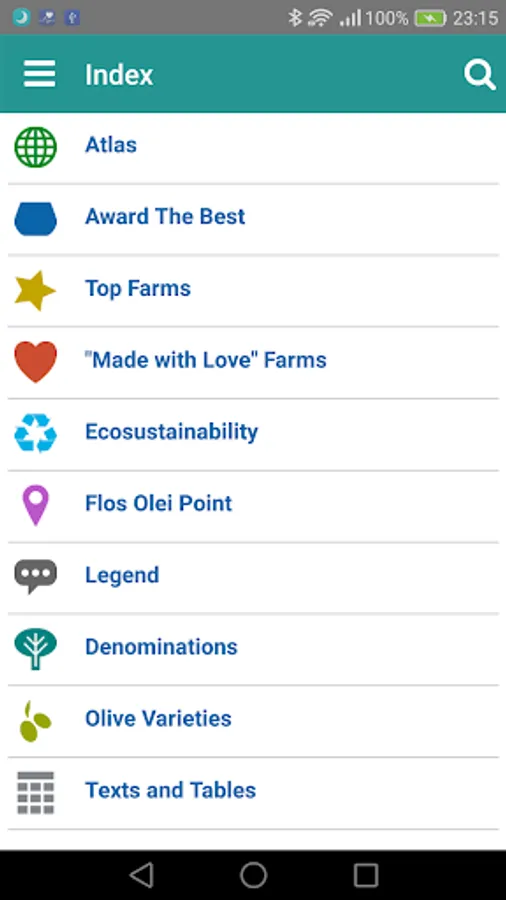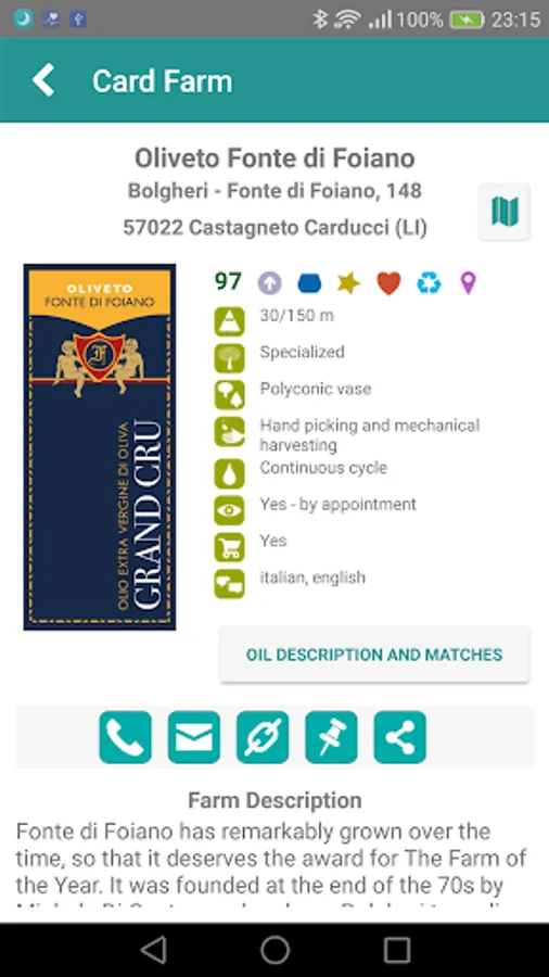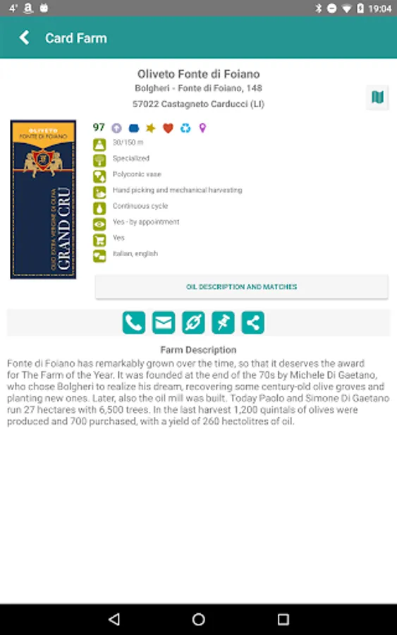 This version is dedicated to Italy. You can wander 19 regions of the country, read their historical and geographical introductions, find maps and statistical data about their productions and refer to 265 high-quality farms and as many oils described according to their variety, organoleptic characteristics and the best matches.