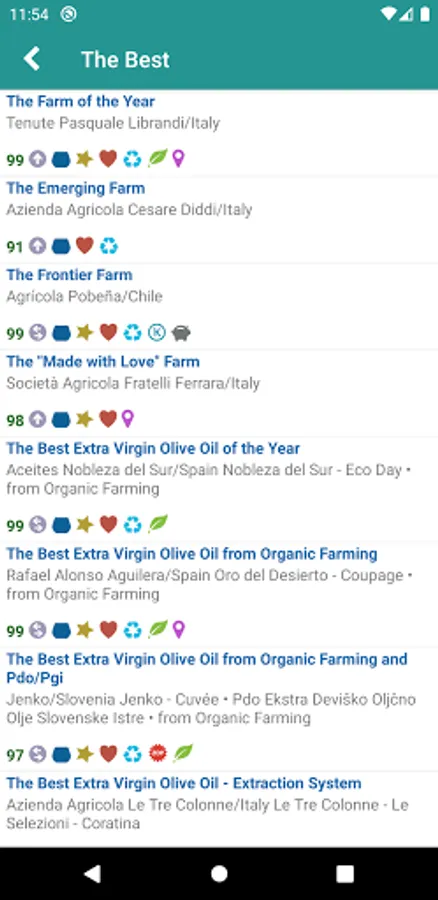 • Look for one of the extra virgin olive oils included in the book according to farm name, geographical area, ranking, price range, intensity of fruitiness, denomination of origin, from Organic Farming, value for money.