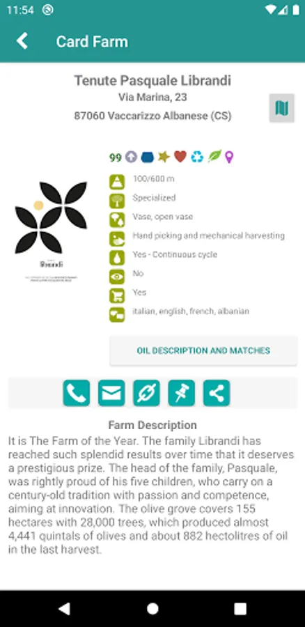 You can wander 5 continents and 54 countries (including Spanish and Italian regions), read their historical and geographical introductions, find maps and statistical data about the world productions and refer to 500 high-quality farms and as many oils described according to their variety, organoleptic characteristics and the best matches.