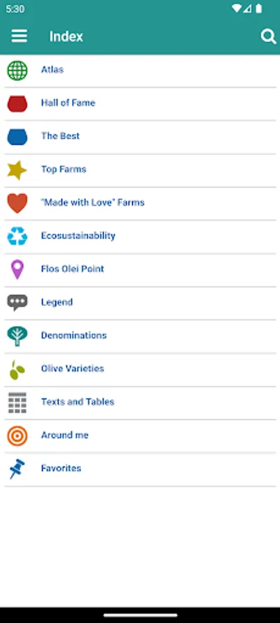 You can wander 5 continents and 56 countries (including Spanish and Italian regions), read their historical and geographical introductions, find maps and statistical data about the world productions and refer to 500 high-quality farms and as many oils described according to their variety, organoleptic characteristics and the best matches.
