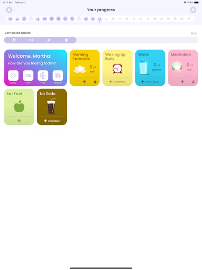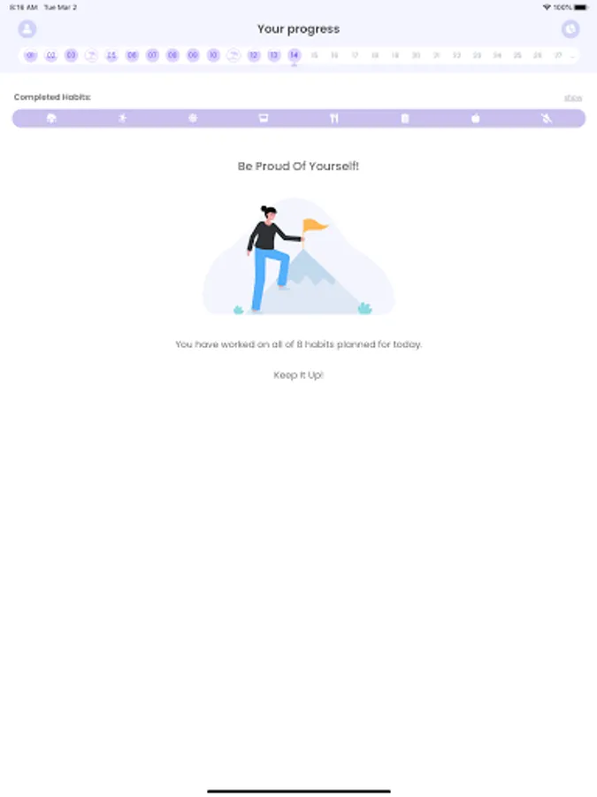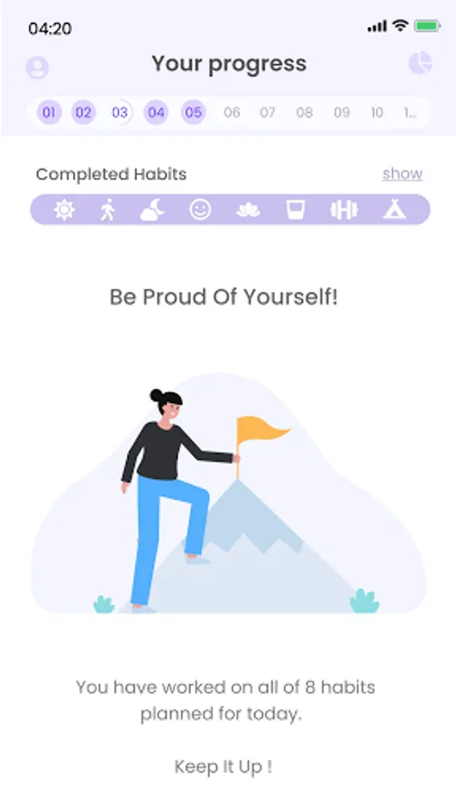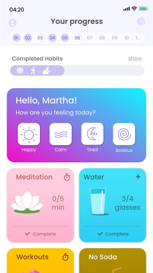 We created Flouris to help you get started with and become used to your self-care rituals: will it be healthy food, meditation, new step goals, or maybe face massage? Simply choose your goal and start building good habits!