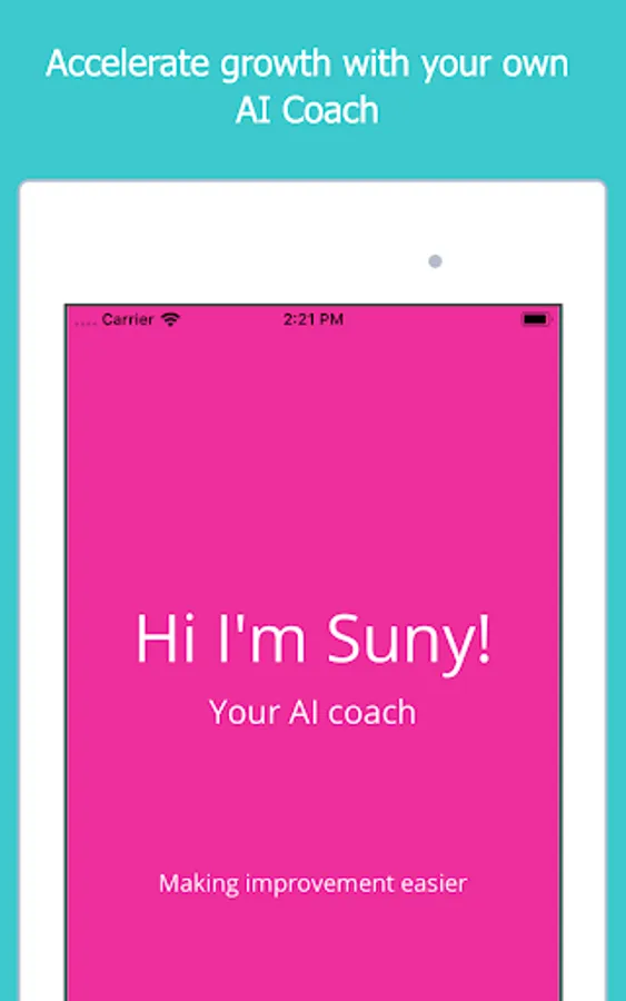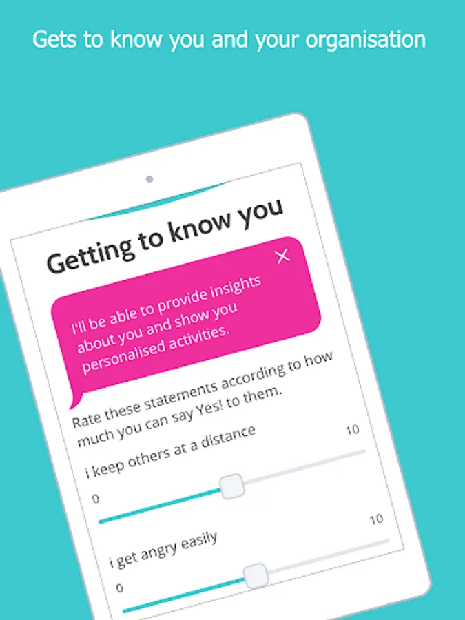 1. Giving you this app – which enables you to create confidential and shared development worlds where Suny, your AI coach, gets to know you, provides insights about your biggest wins and makes change easier with personalised, interactive improvement tools, delivered in bite-sized chunks.