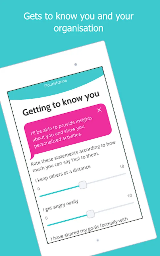 Flourishzone empowers you, and the groups you care about, to improve your well-being, resilience and performance by giving you hyper-personalised development and making change easier.