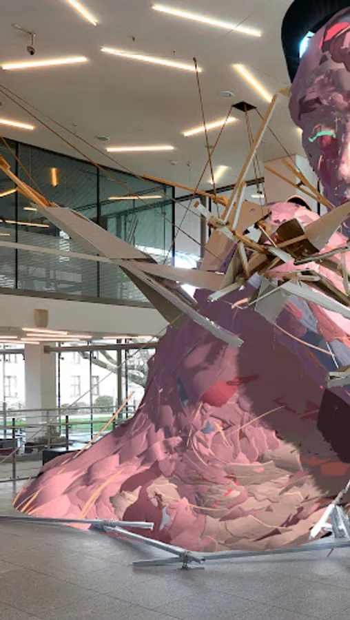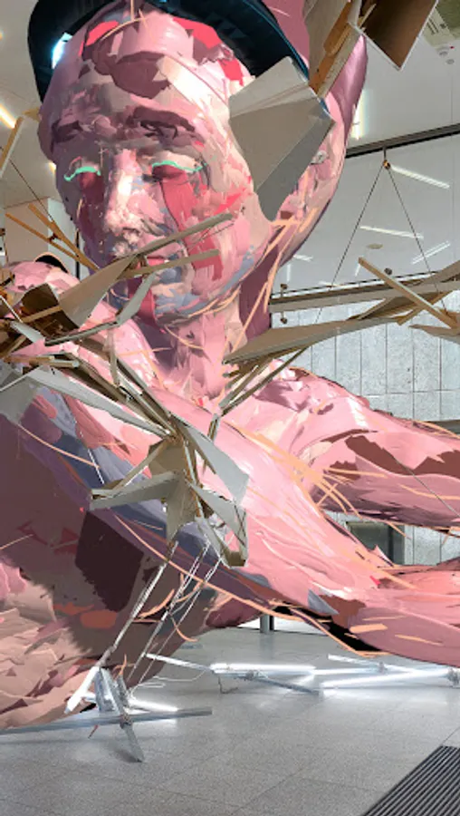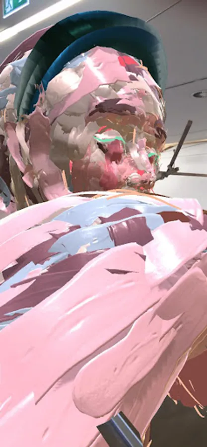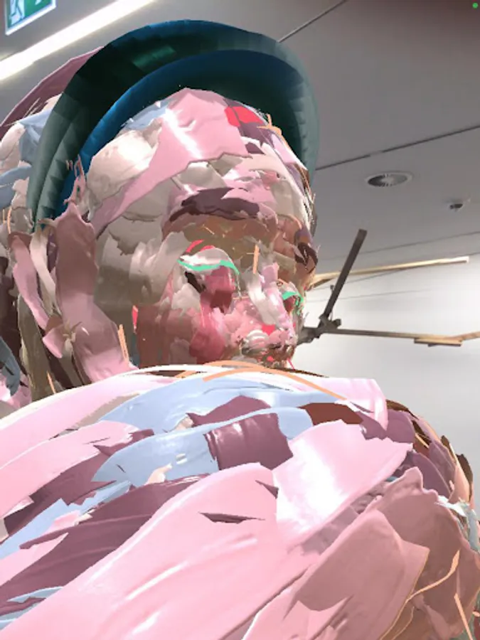 The work ARTIFICIAL_GODS_Eurydike 6 in the Museum Ratingen shows an abstract image that is transferred to the plastic by this app. The work of art is present and absent at the same time. In the installation by Evangelos Papadopoulos, the virtual body of Eurydice grows out of the image. A digital, virtual layer is created on the smartphone that corresponds to the analog installation.