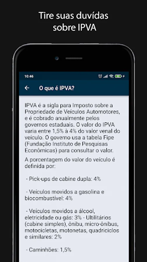 The IPVA Quick Consultation can help you to consult public information about your vehicle and find the value of the IPVA in any state in Brazil in a simple, fast and safe way. The app does not collect your personal or vehicle data.