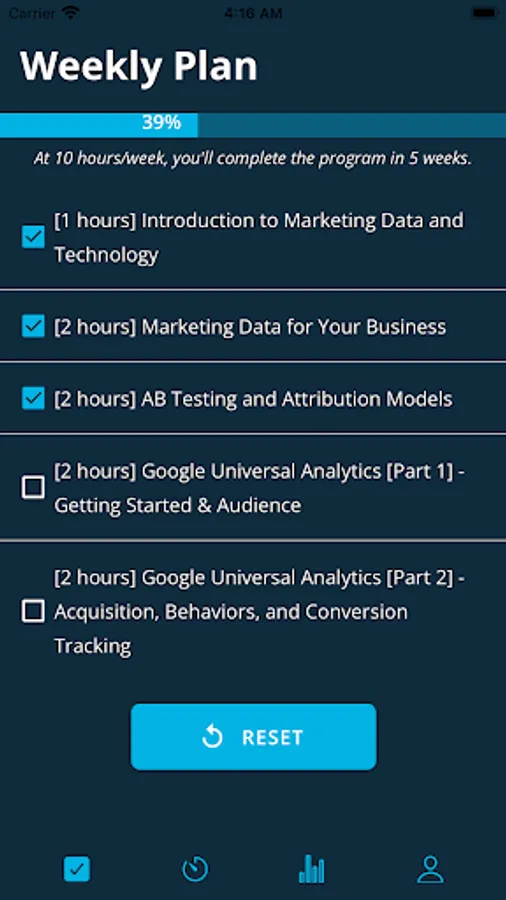 - Set weekly learning goals, given how much time you can dedicate.