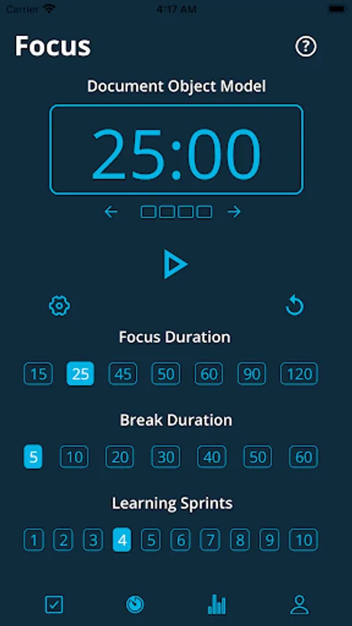 - Set custom focus duration, break duration, and learning sprint count for each day.