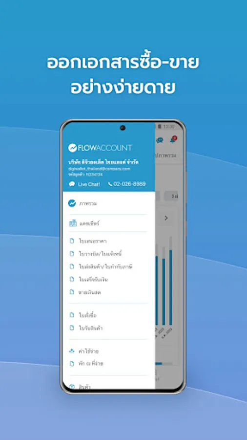 - สามารถล็อกอินเข้าใช้งานเต็มรูปแบบบนเว็บไซต์ flowaccount.com