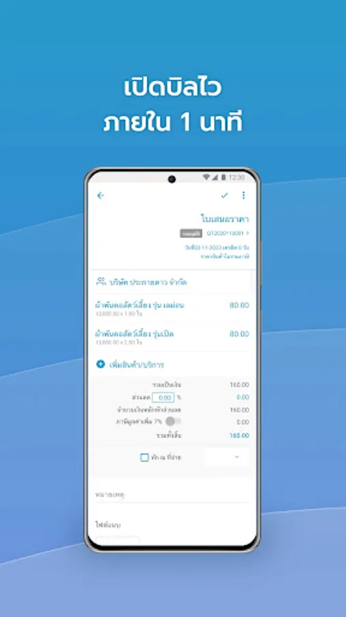 - ออกเอกสารต่างๆ เช่น ใบเสนอราคา ใบวางบิล ใบกำกับภาษี ใบเสร็จรับเงิน ใบหัก ณ ที่จ่าย ฯลฯ