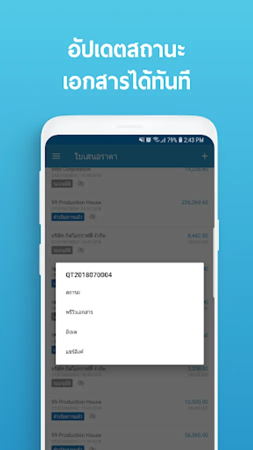 FlowAccount is an easy-to-use cloud invoicing + accounting app for Thai startup businesses. Create and send Quotations, Billing Notes, Tax Invoices/Receipts directly on your iPhone, anytime, anywhere. Free sign up. No credit card required.