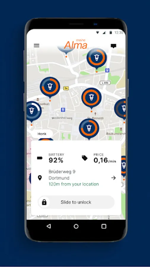 ✓ Intuitive and fast: locate the scooter, reserve it for 15 minutes free of charge and off you go for 19 cents per minute